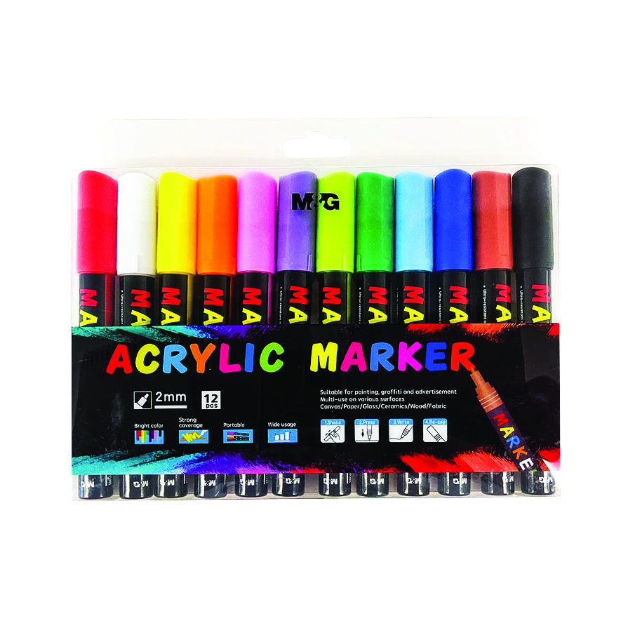 מארז 12 טושים אקרילים בעובי 2 מ"מ